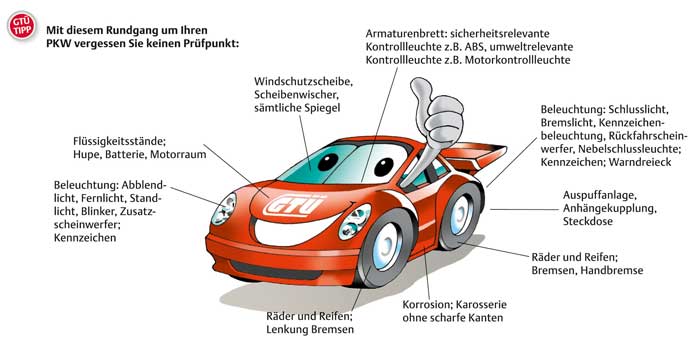 Achten Sie auf den Ablaufmonat Ihrer Prüfplakette; Überziehen kann in Zukunft doppelt teuer werden, denn es droht neben der erhöhten Prüfgebühr ein Verwarnungs- oder Bußgeld. Nutzen Sie den Service der GTÜ und registrieren Sie sich kostenfrei unter http://hu-erinnerung.gtue.de für die rechtzeitige E-Mail-Erinnerung zur nächsten Hauptuntersuchung Ihres Fahrzeuges. (Die dort eingetragenen Daten werden von der GTÜ nur für diesen Zweck verwendet.)