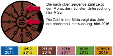 Damit Sie nicht irgendwann eine Mängelkarte hinter den Scheibenwischern Ihres Fahrzeugs vorfinden, achten Sie auf die Daten, die Ihnen die Prüfplakette auf dem hinteren Kennzeichen anzeigt. Darauf zu erkennen ist der Monat und das Jahr in dem die Durchführung der nächsten Hauptuntersuchung erforderlich ist. Die Farbe gibt zusätzlich nochmals Aufschluss über das Jahr der Fälligkeit.