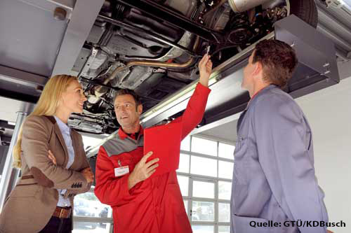 Nach dem Motto "Mehr Service für Sicherheit" setzen sich die GTÜ-Prüfingenieure für Ihre Sicherheit im Straßenverkehr ein und bringen bei positivem Ergebnis die Prüfplakette an.